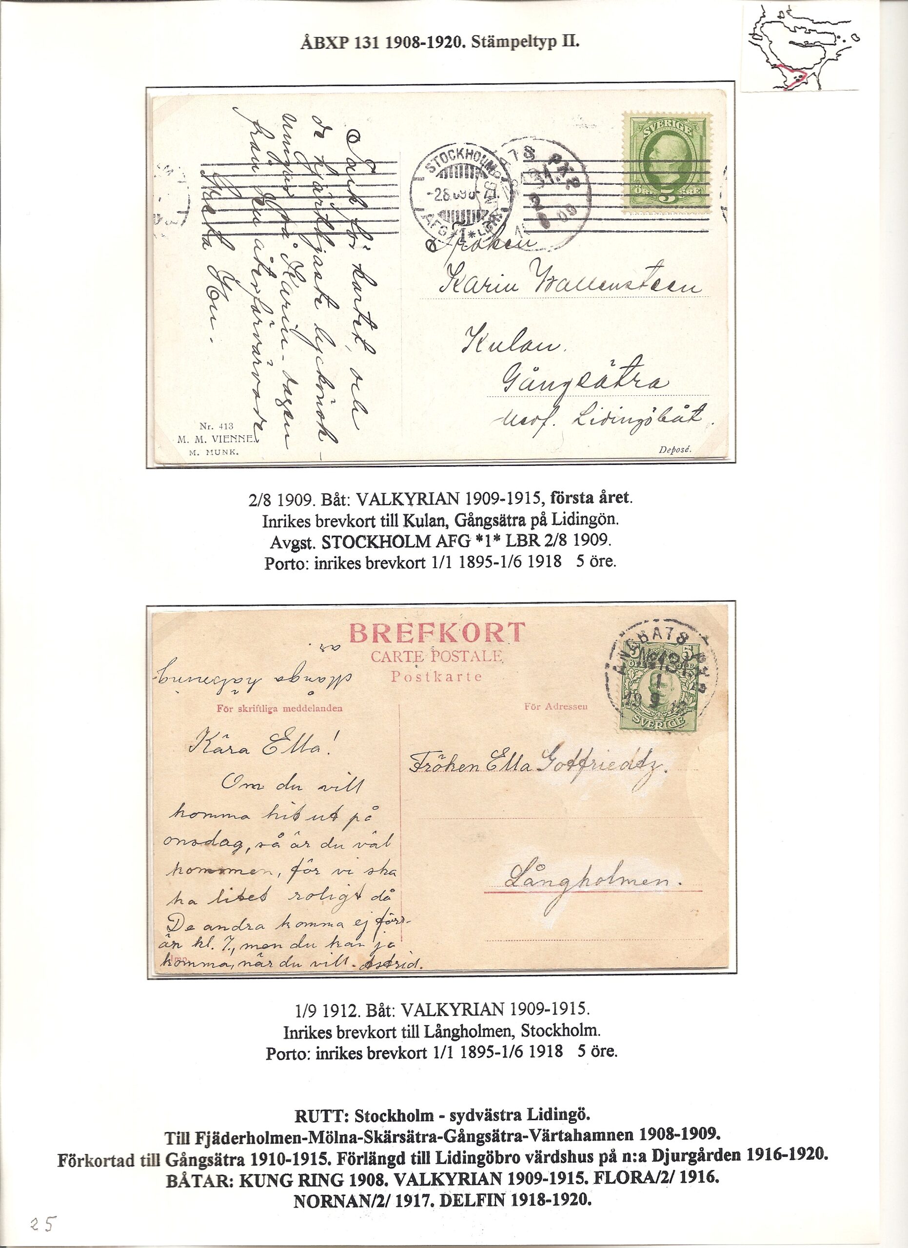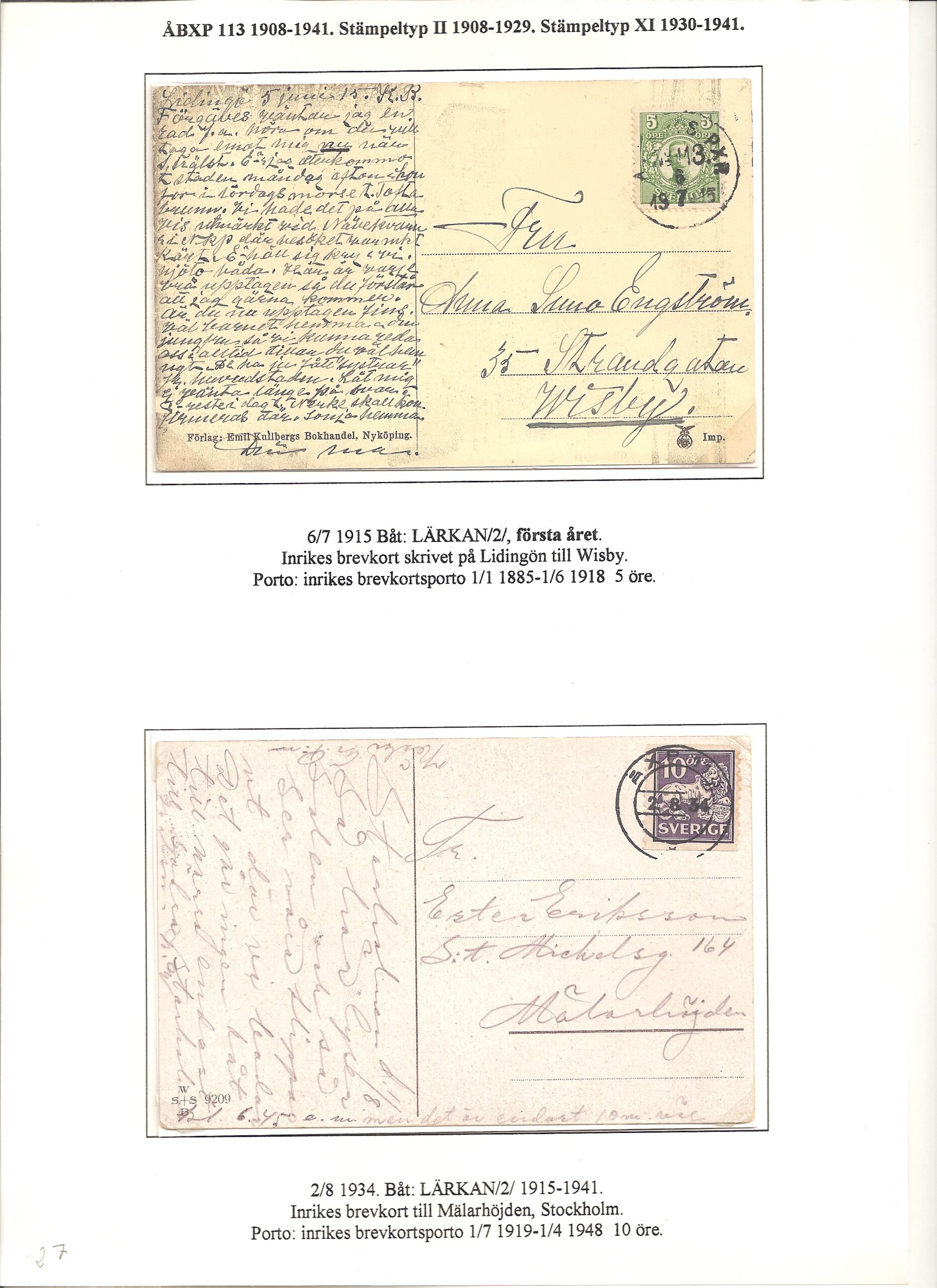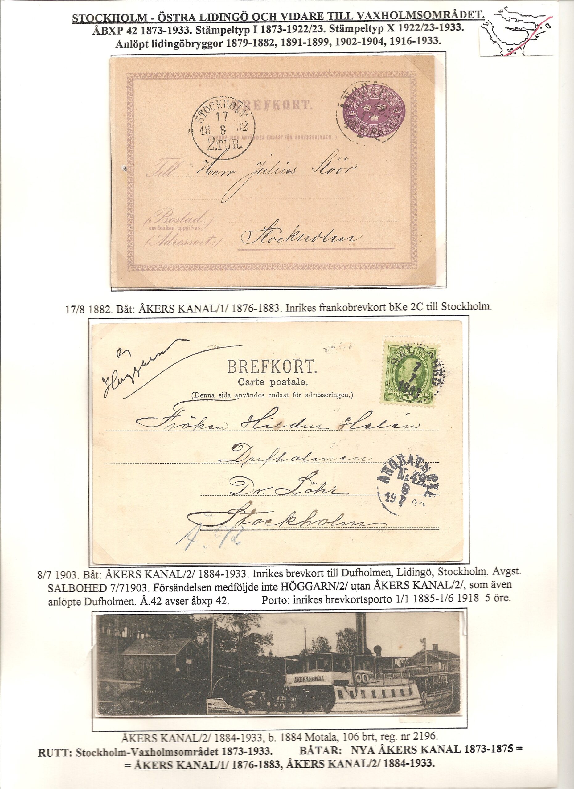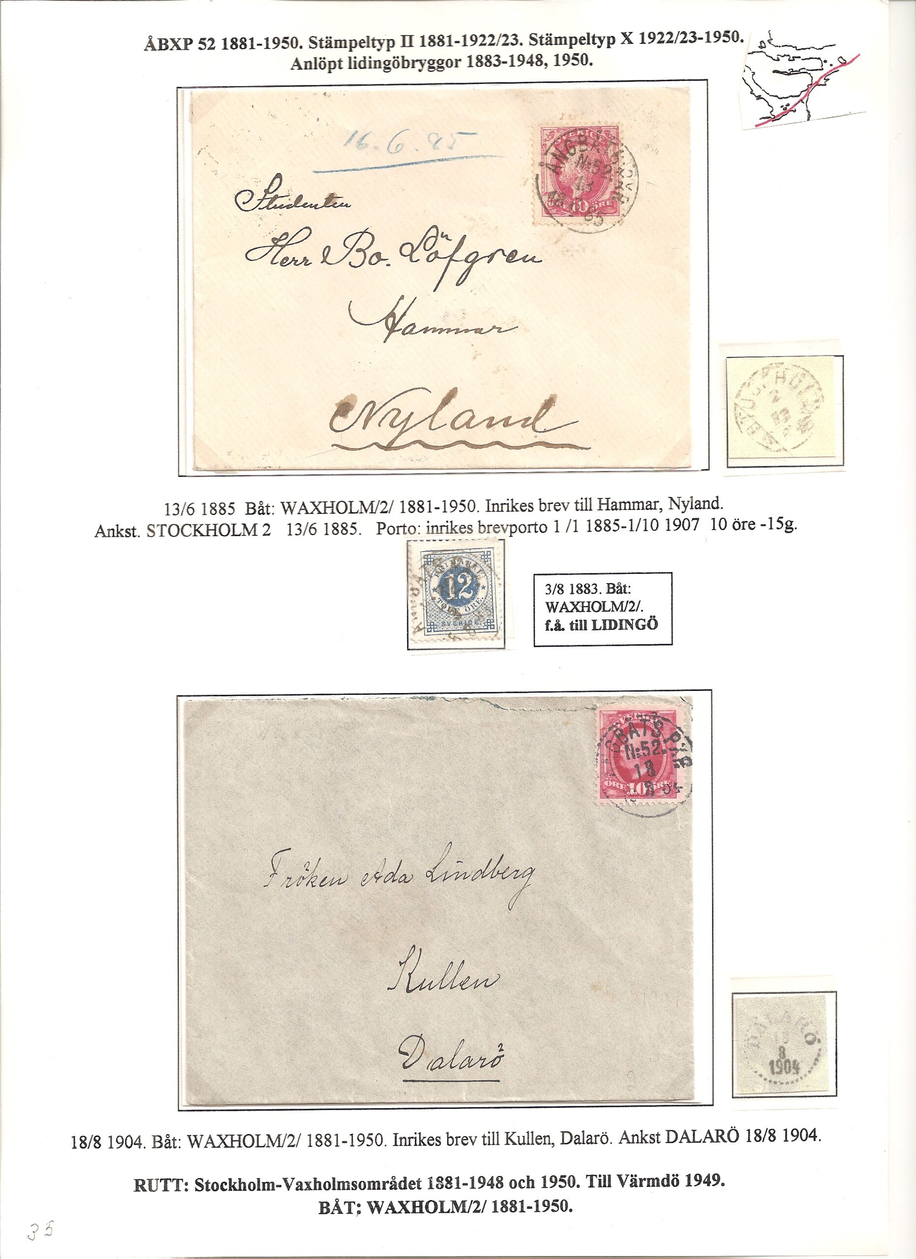 Samlingen Ångbåtspost till Lidingö skapades av Tofte Norén (1928 – 2017). En speciell stämpel är den blåa ÅBXP 11.