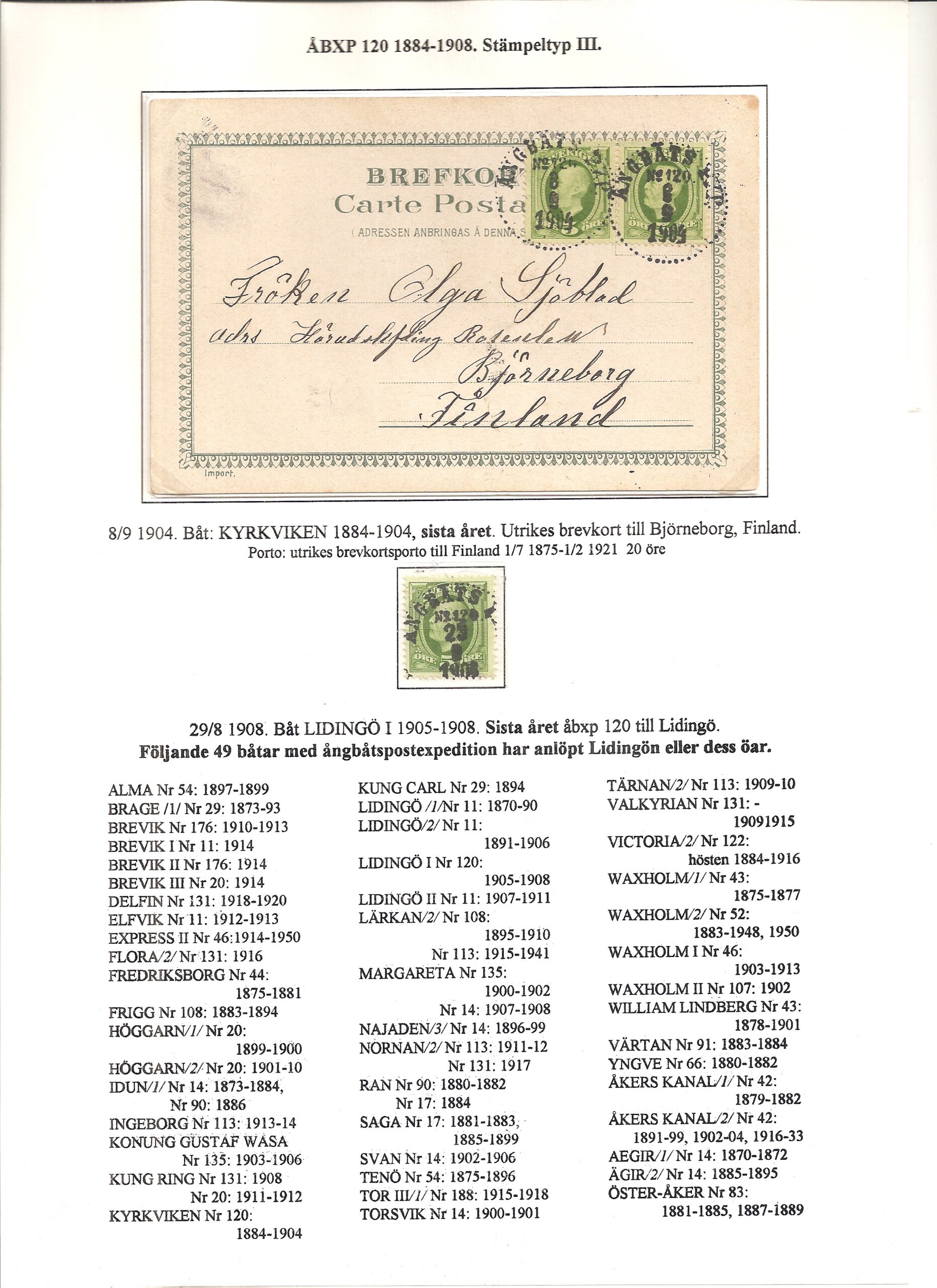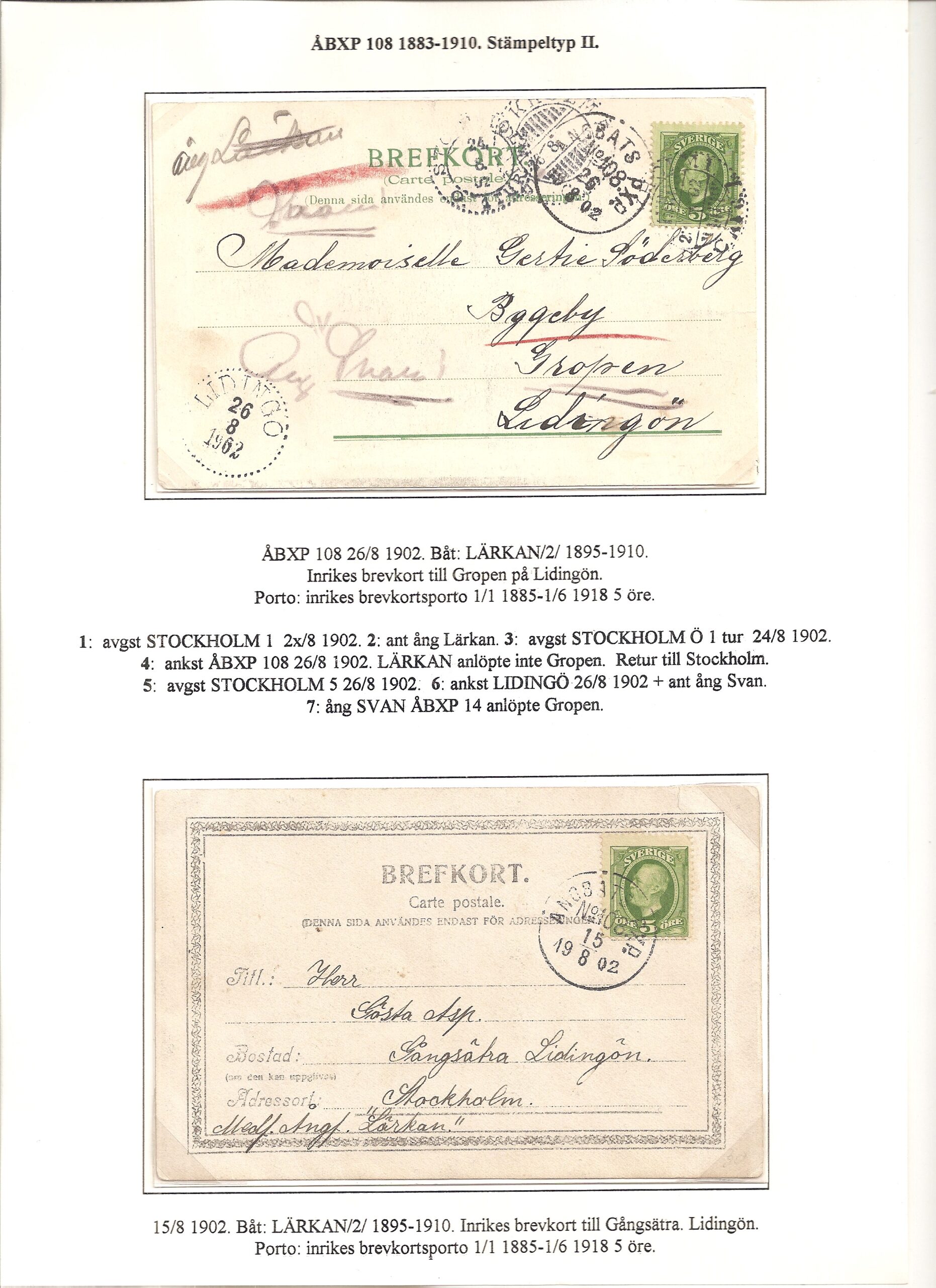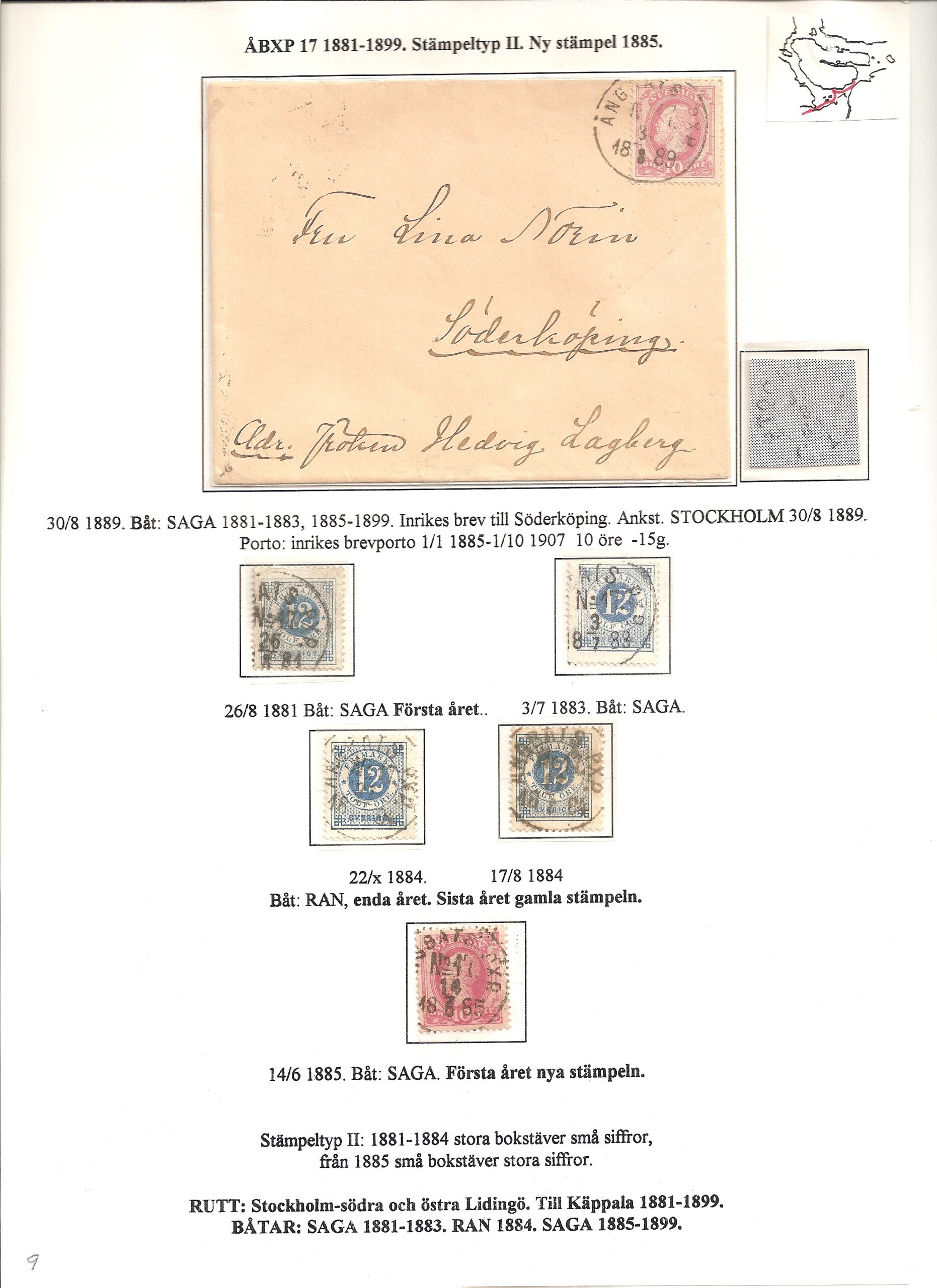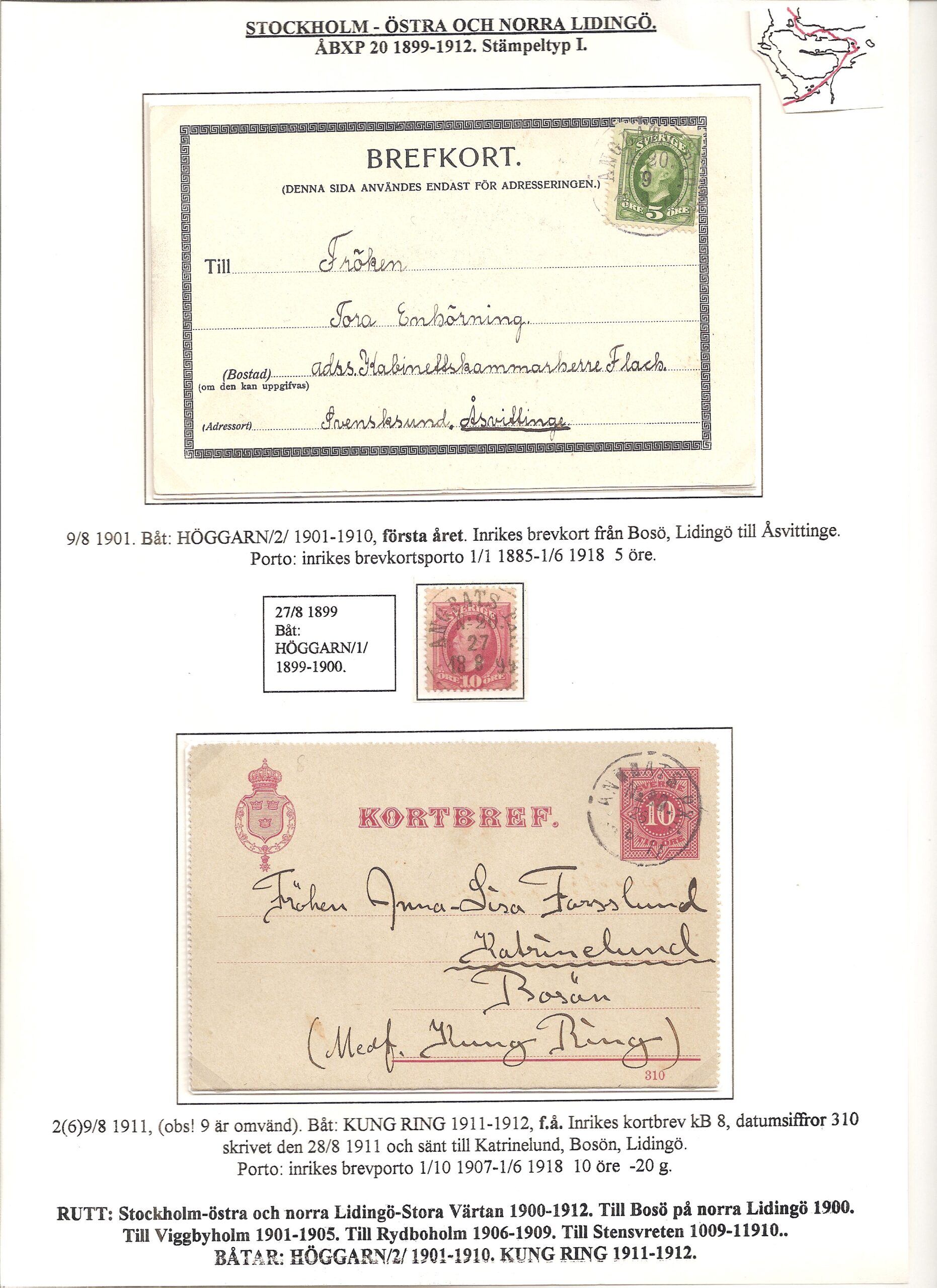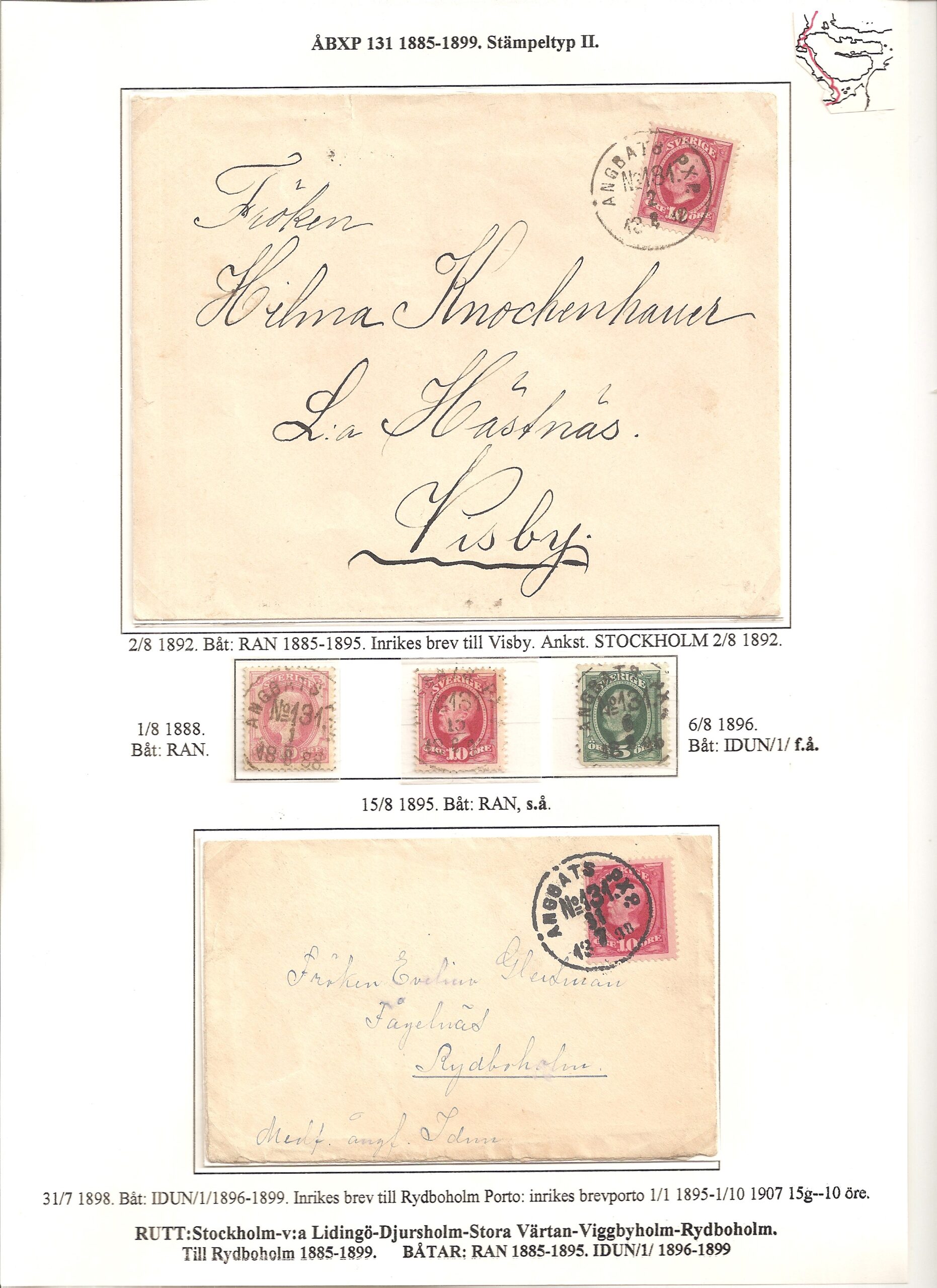 Samlingen Ångbåtspost till Lidingö skapades av Tofte Norén (1928 – 2017). En speciell stämpel är den blåa ÅBXP 11.