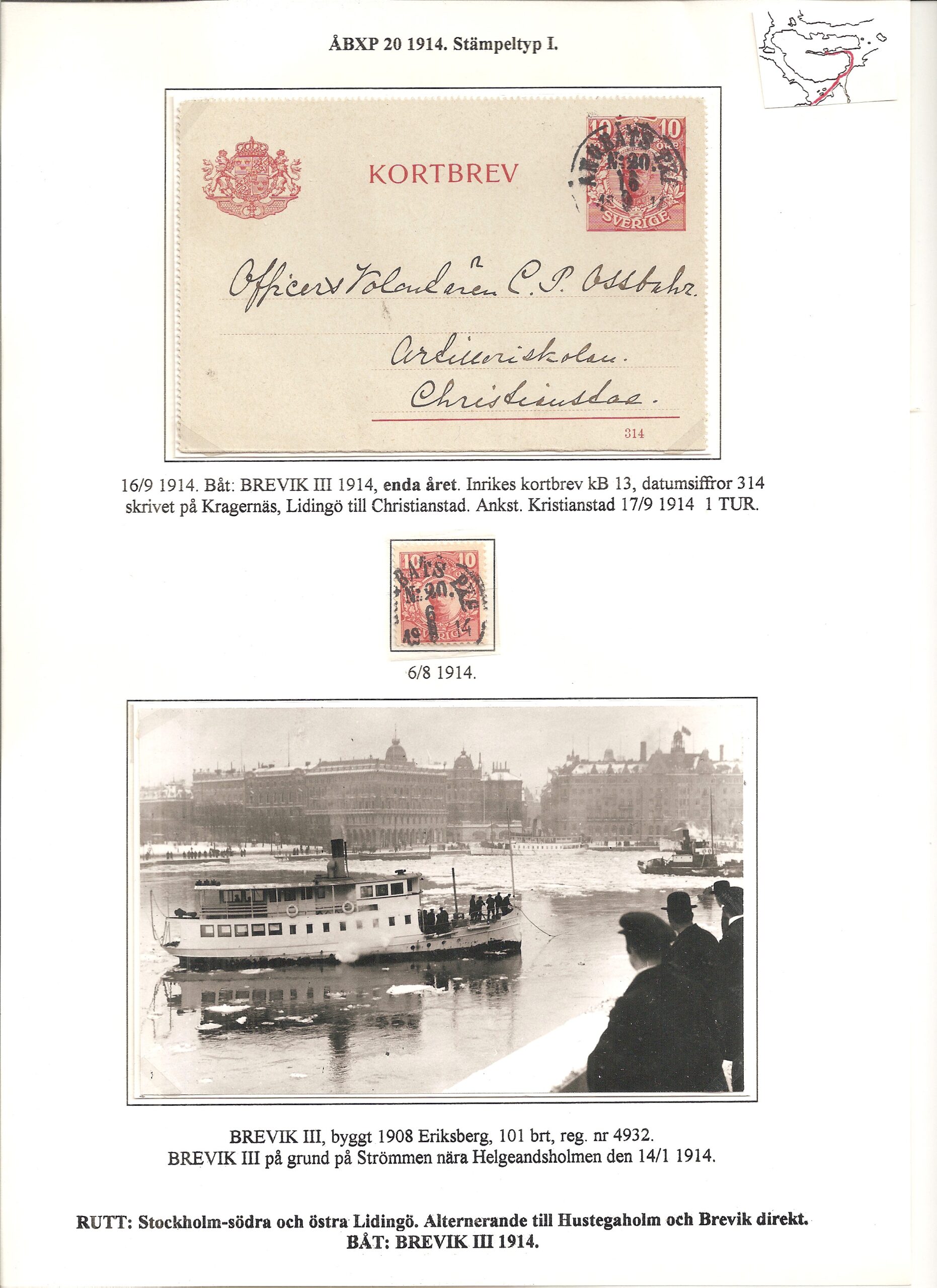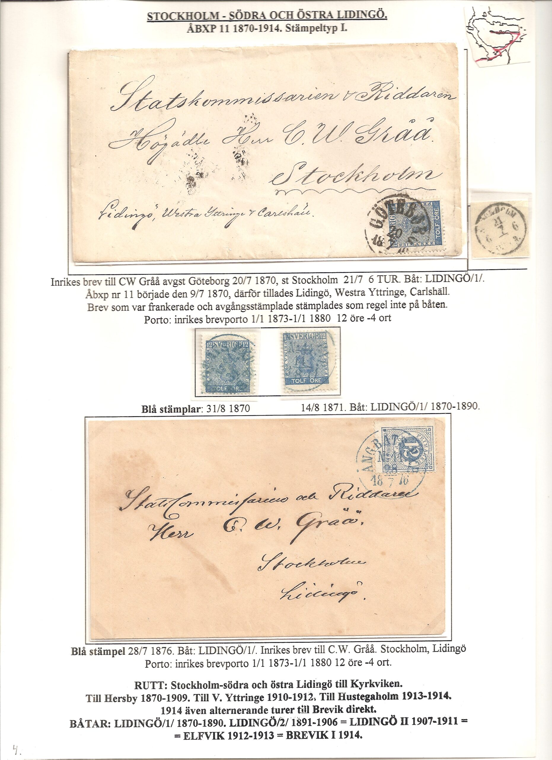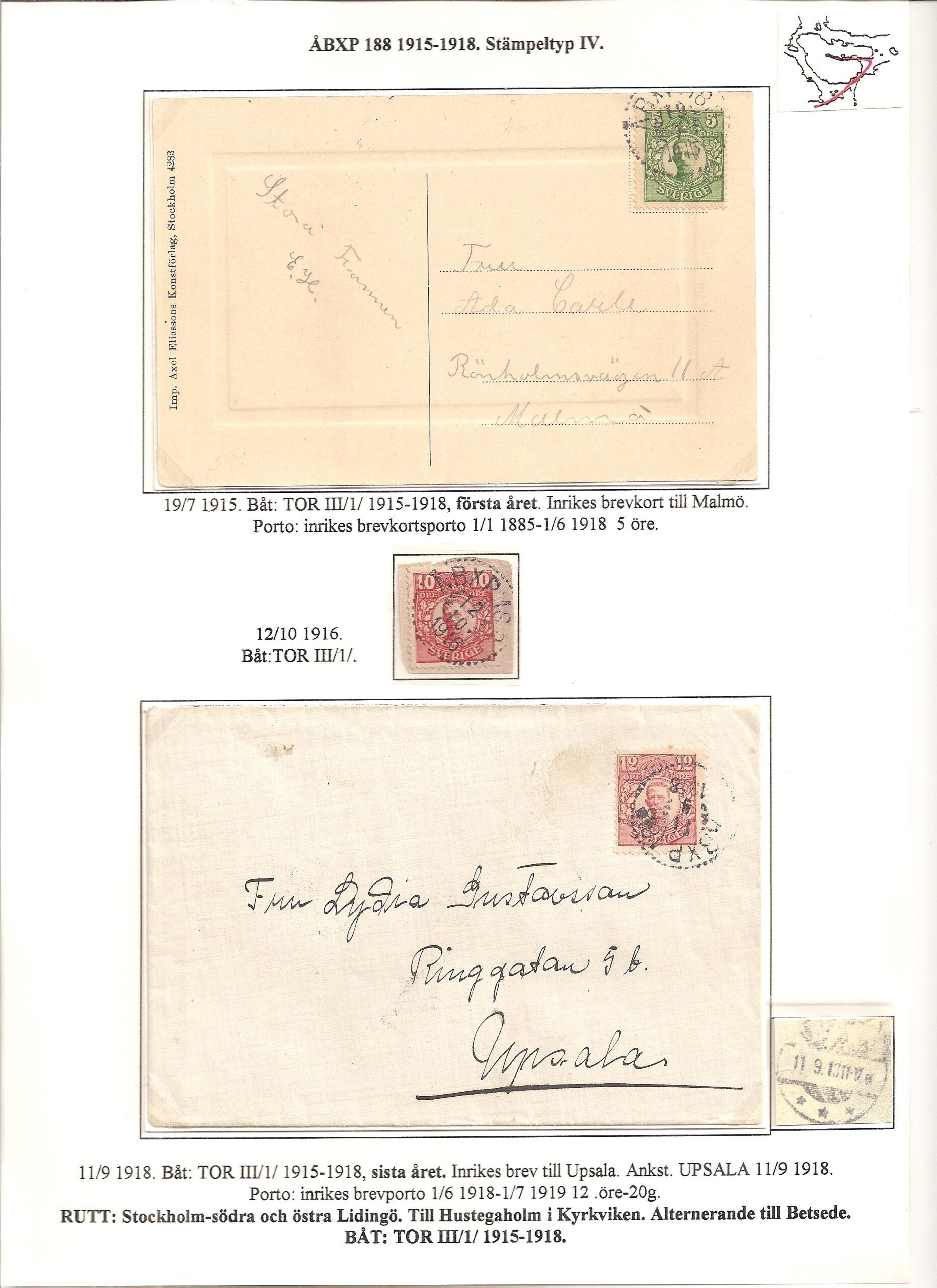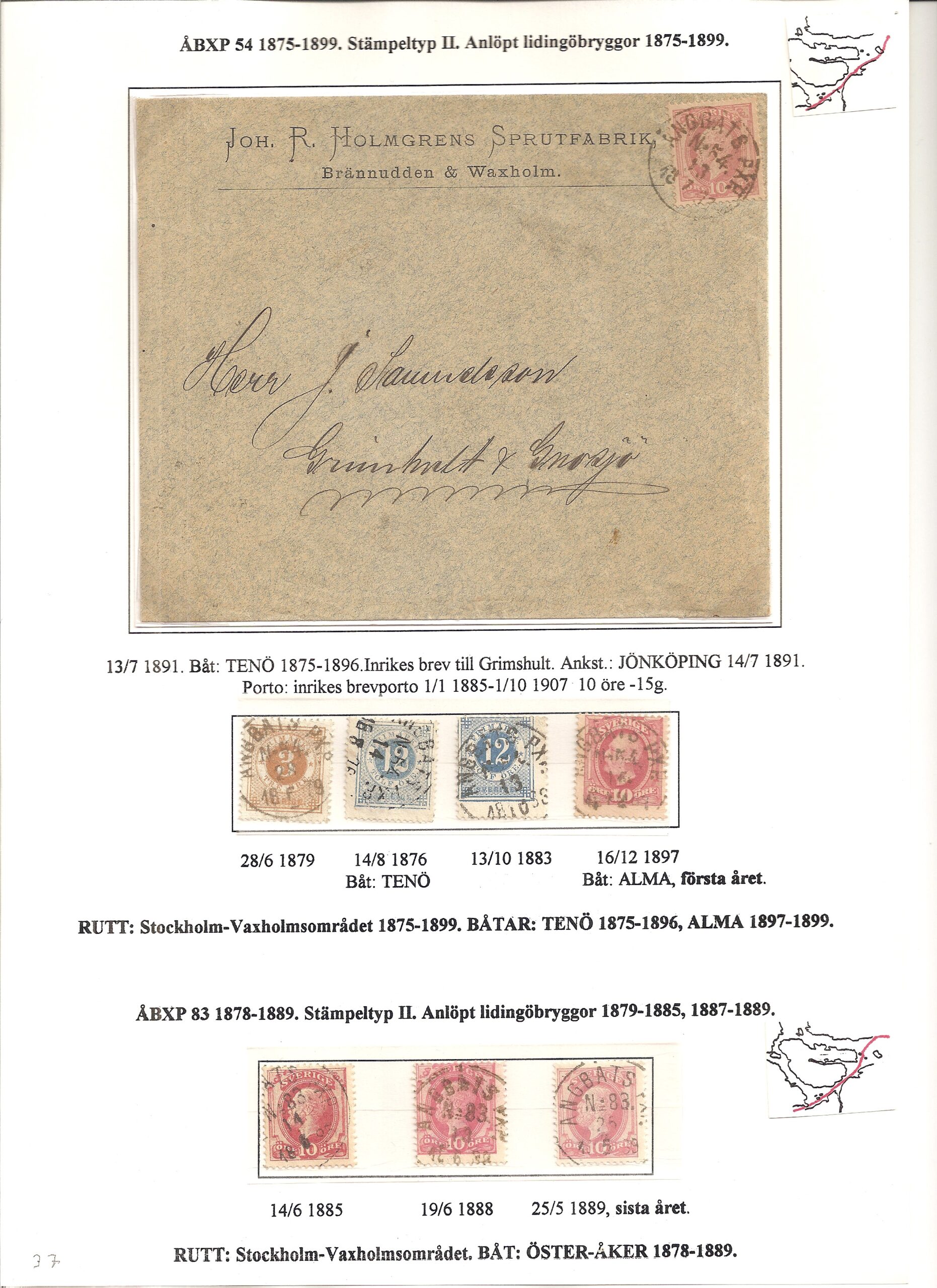 Samlingen Ångbåtspost till Lidingö skapades av Tofte Norén (1928 – 2017). En speciell stämpel är den blåa ÅBXP 11.