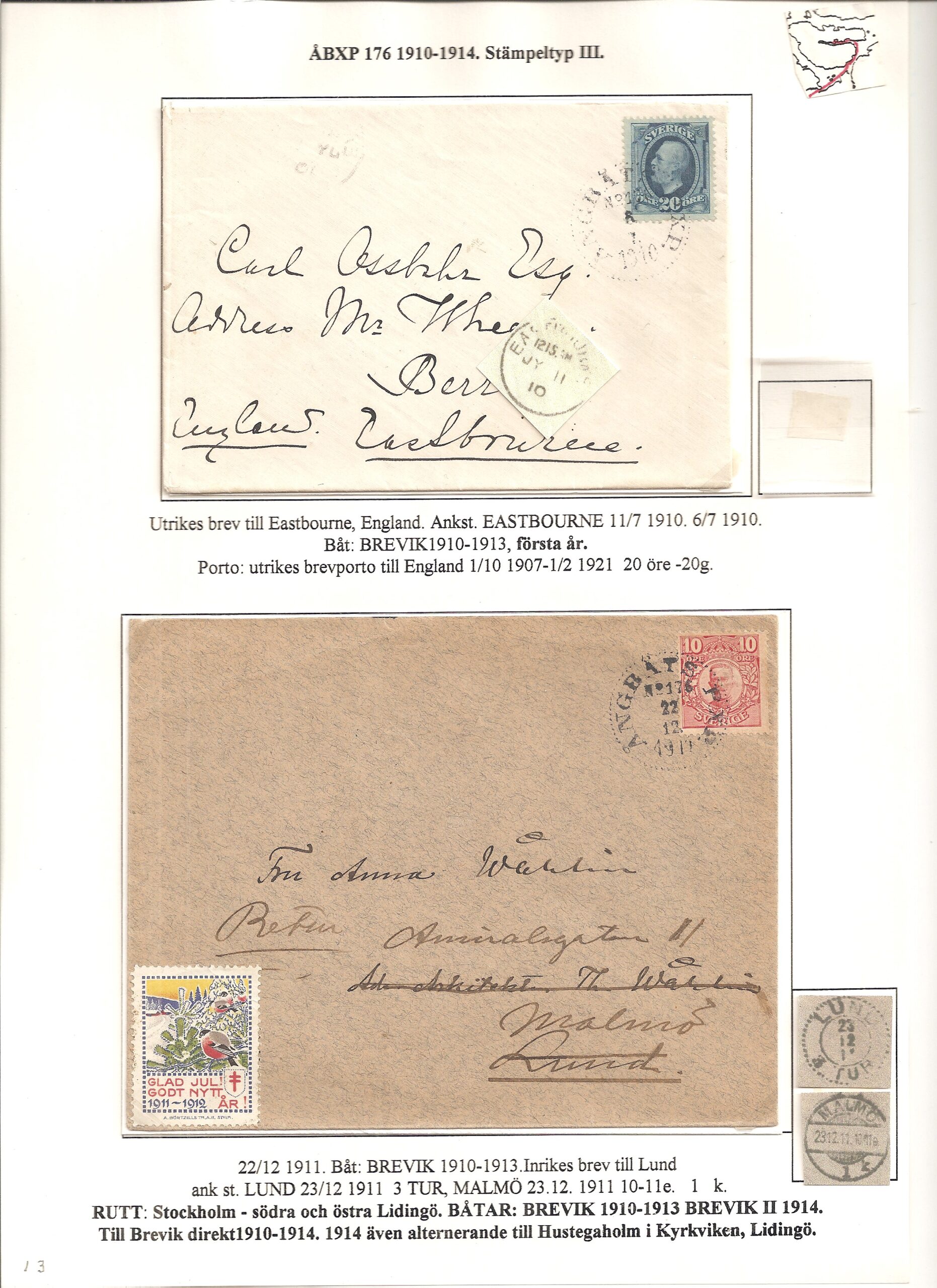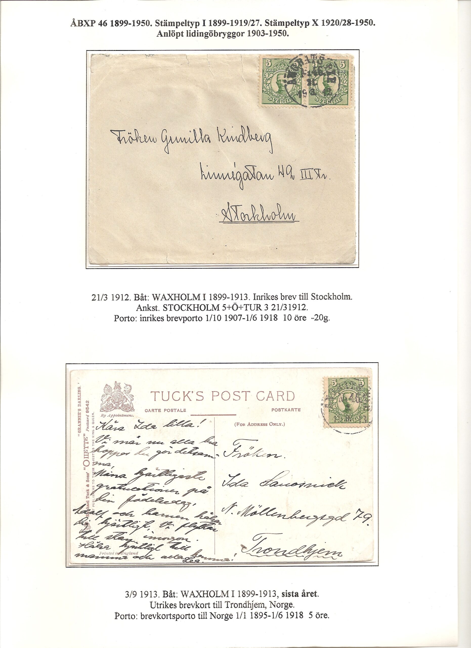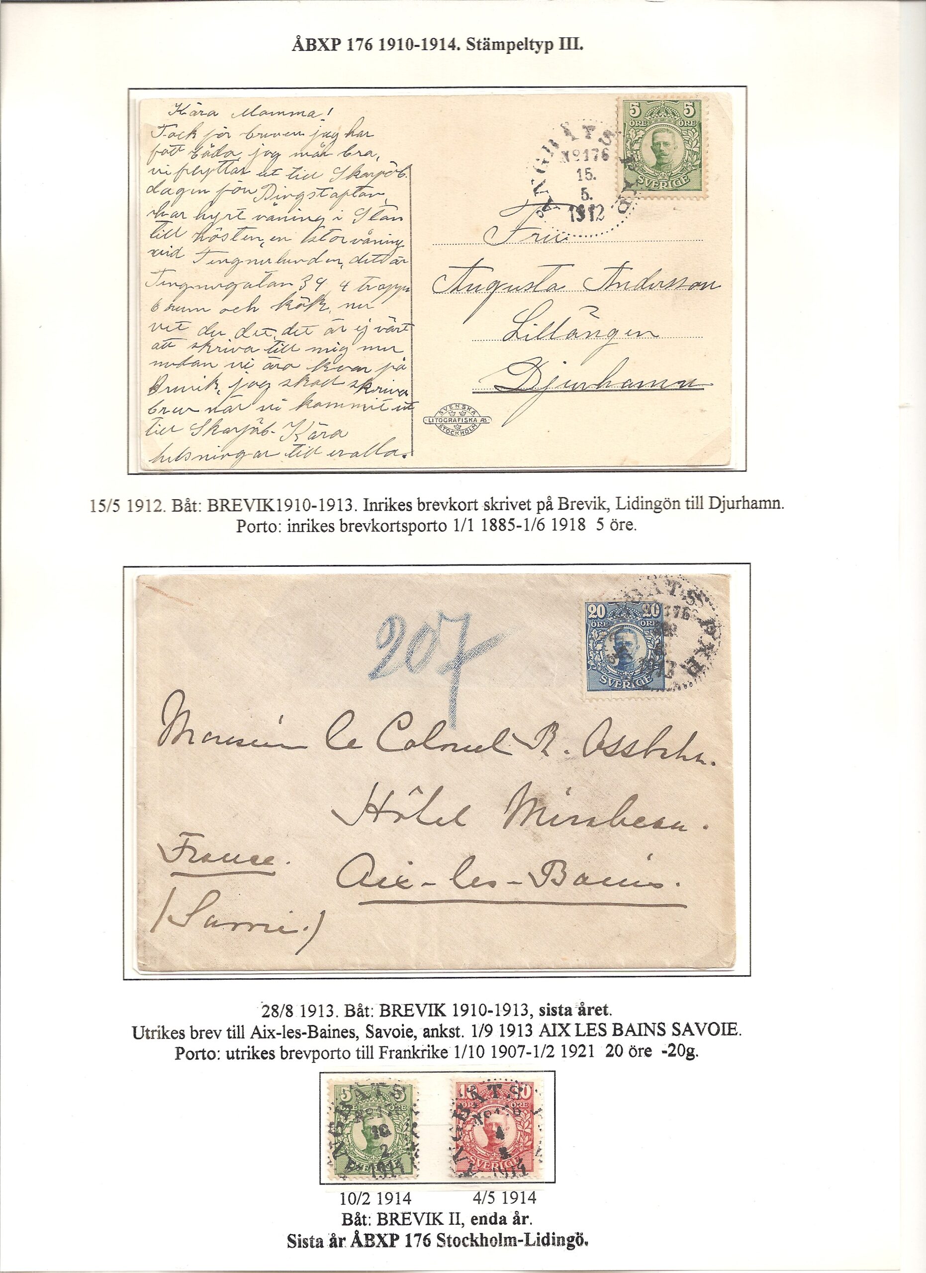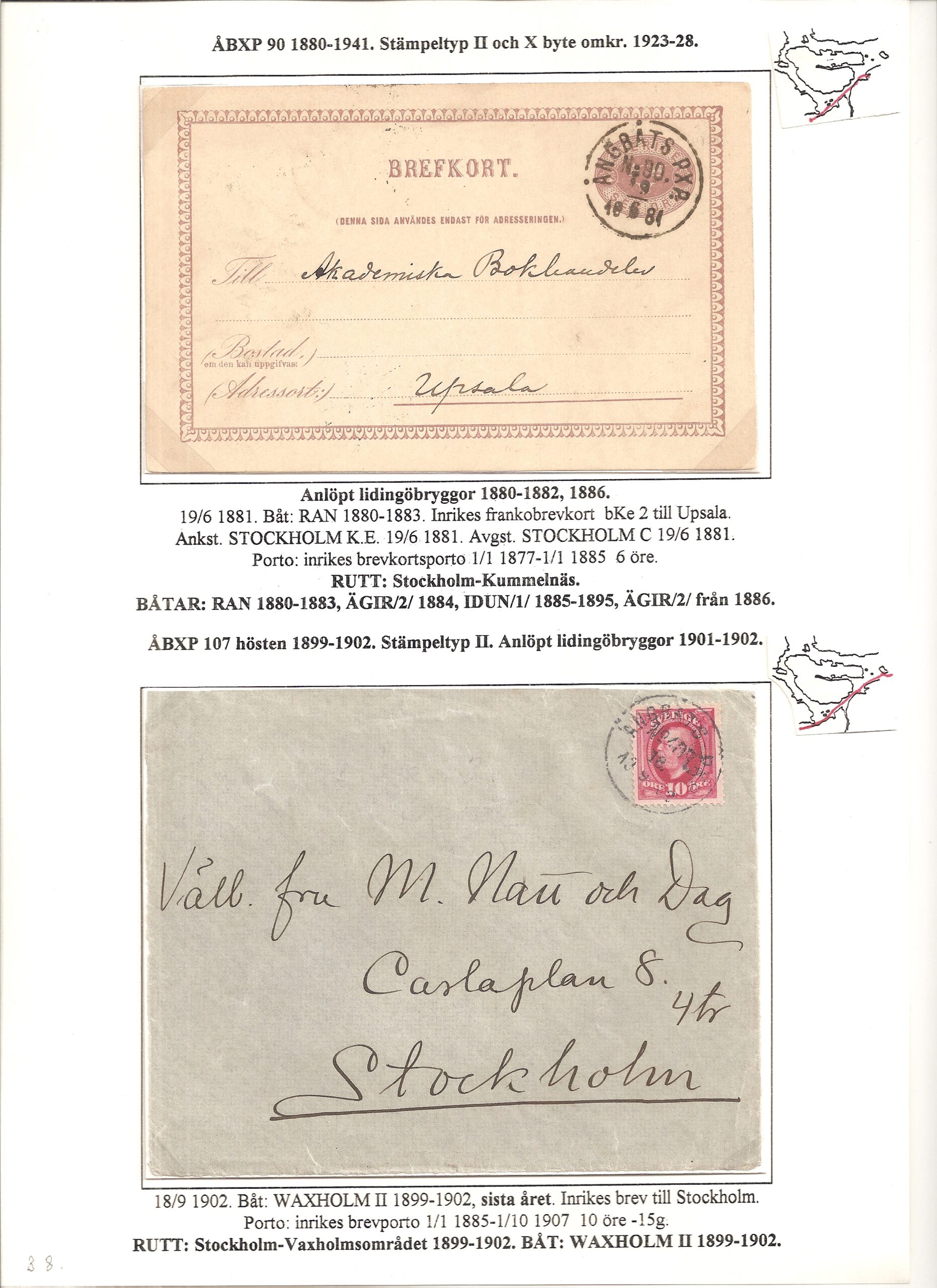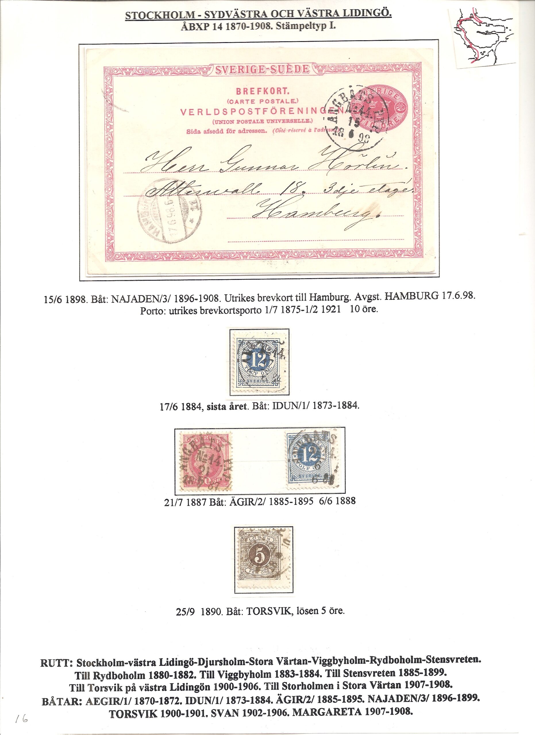 Samlingen Ångbåtspost till Lidingö skapades av Tofte Norén (1928 – 2017). En speciell stämpel är den blåa ÅBXP 11.