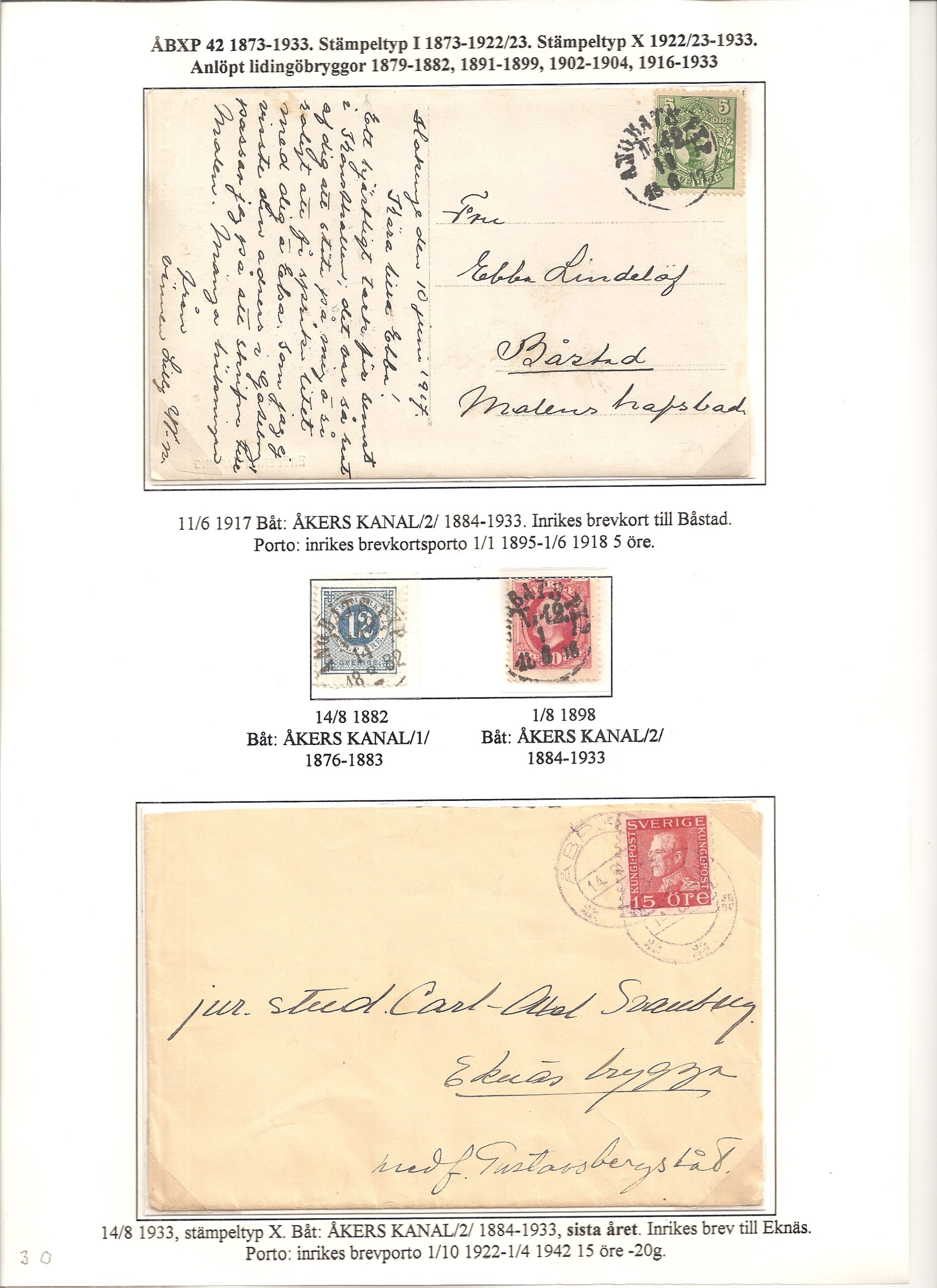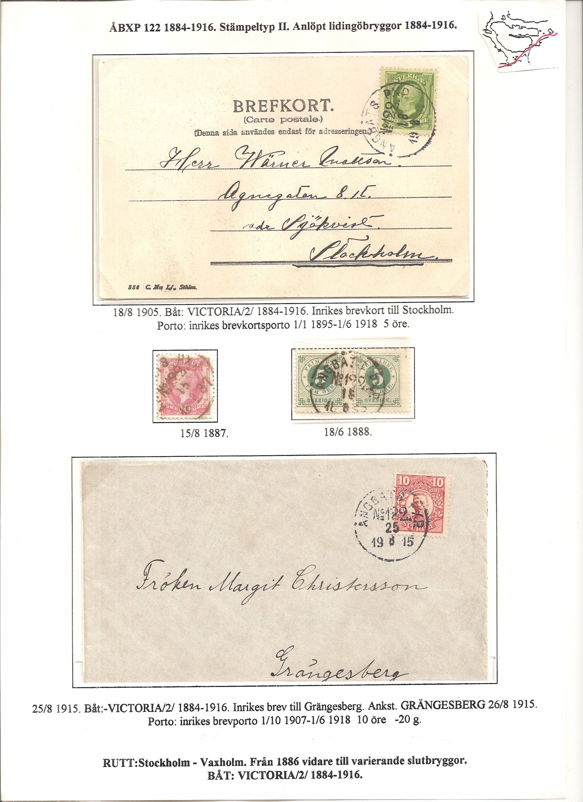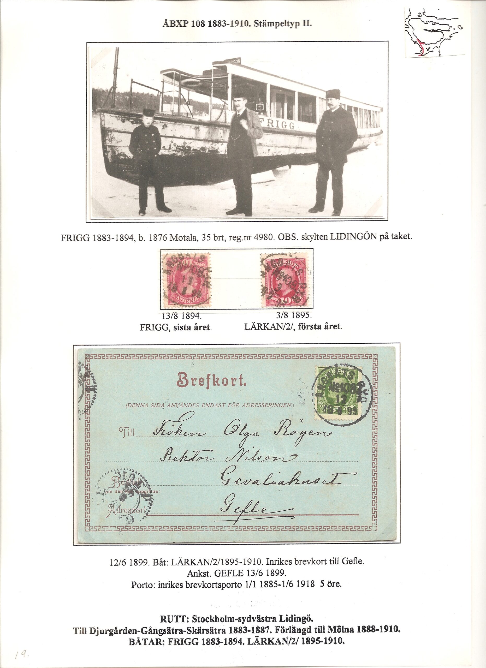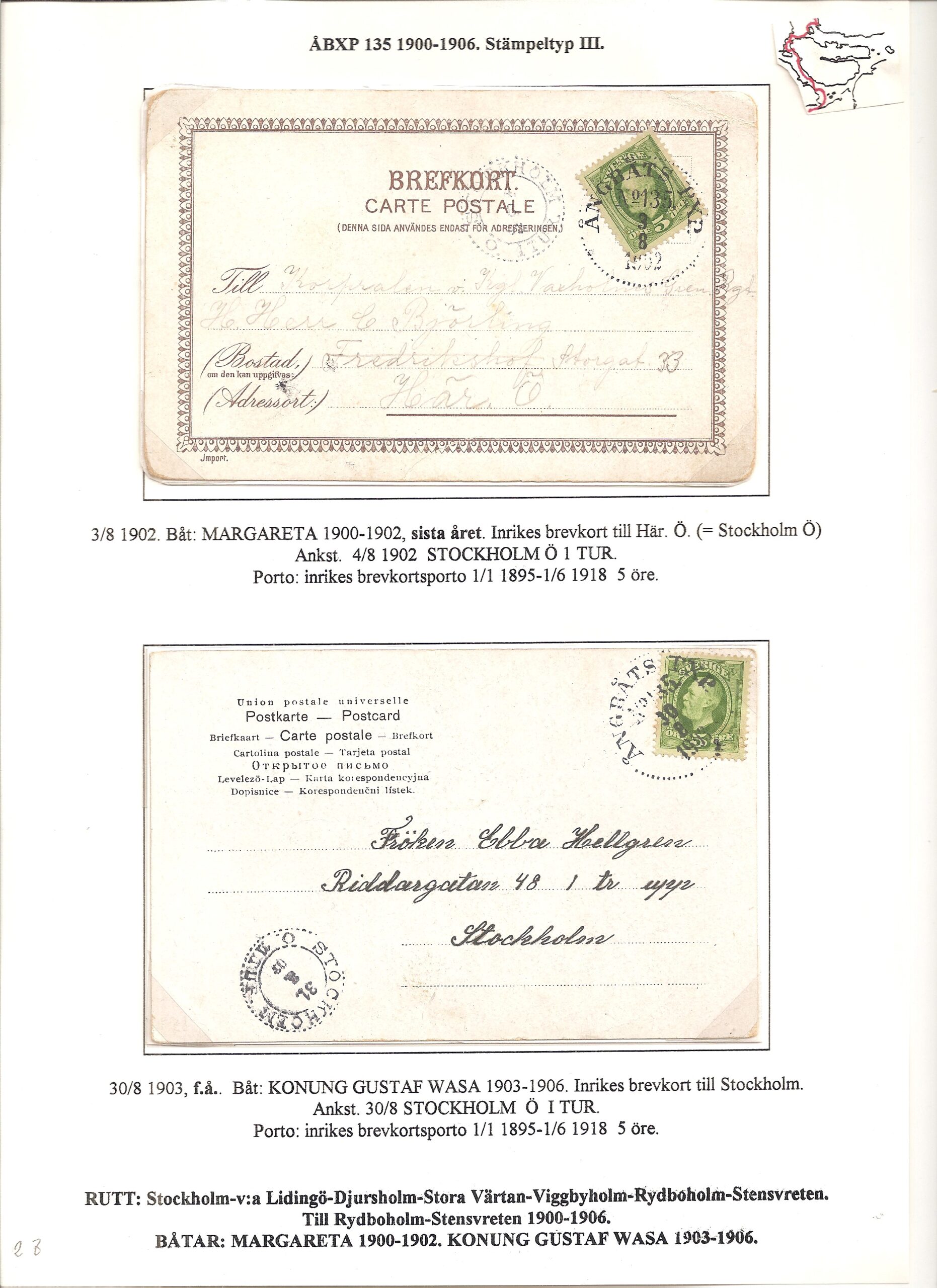 Samlingen Ångbåtspost till Lidingö skapades av Tofte Norén (1928 – 2017). En speciell stämpel är den blåa ÅBXP 11.