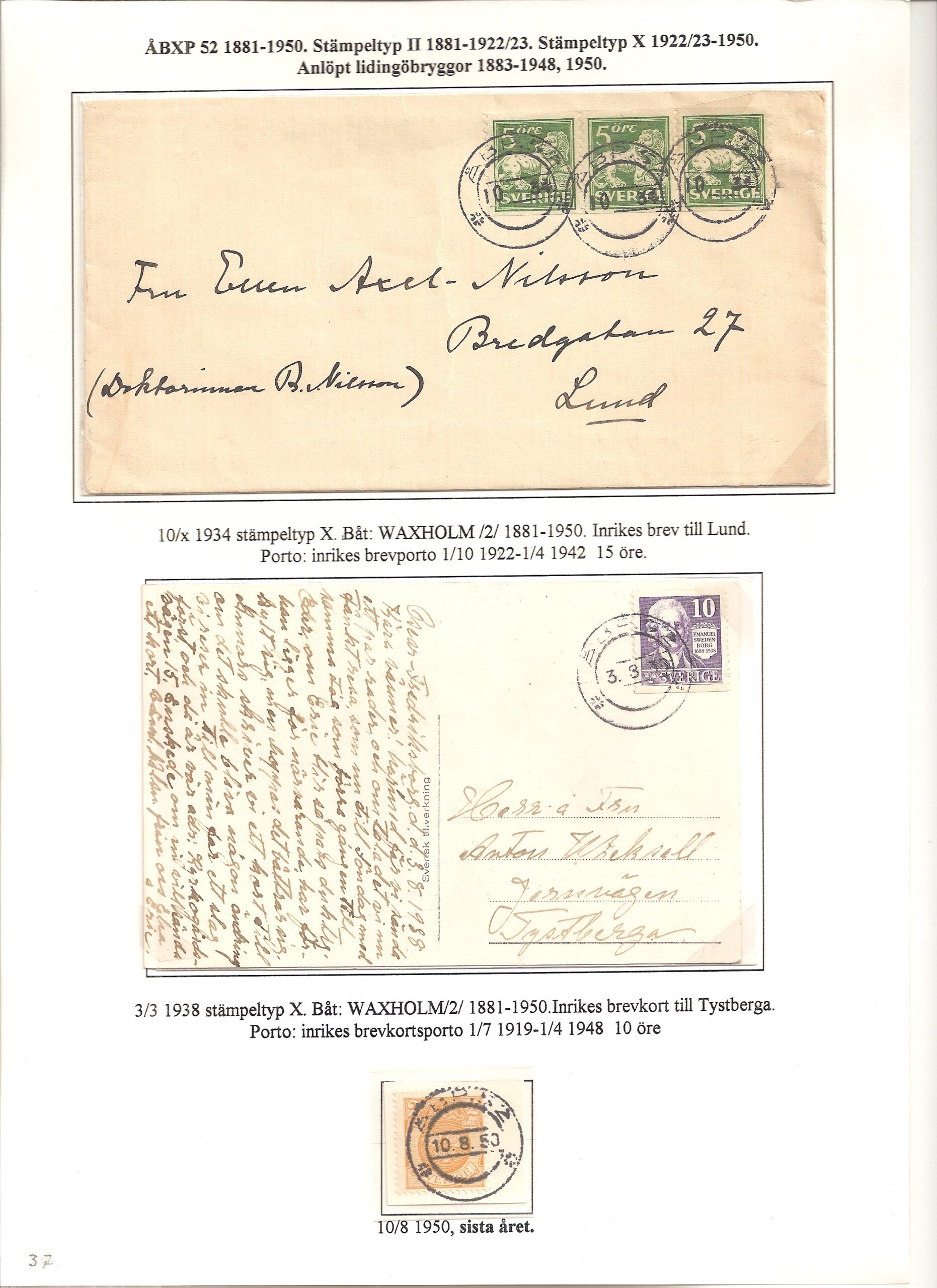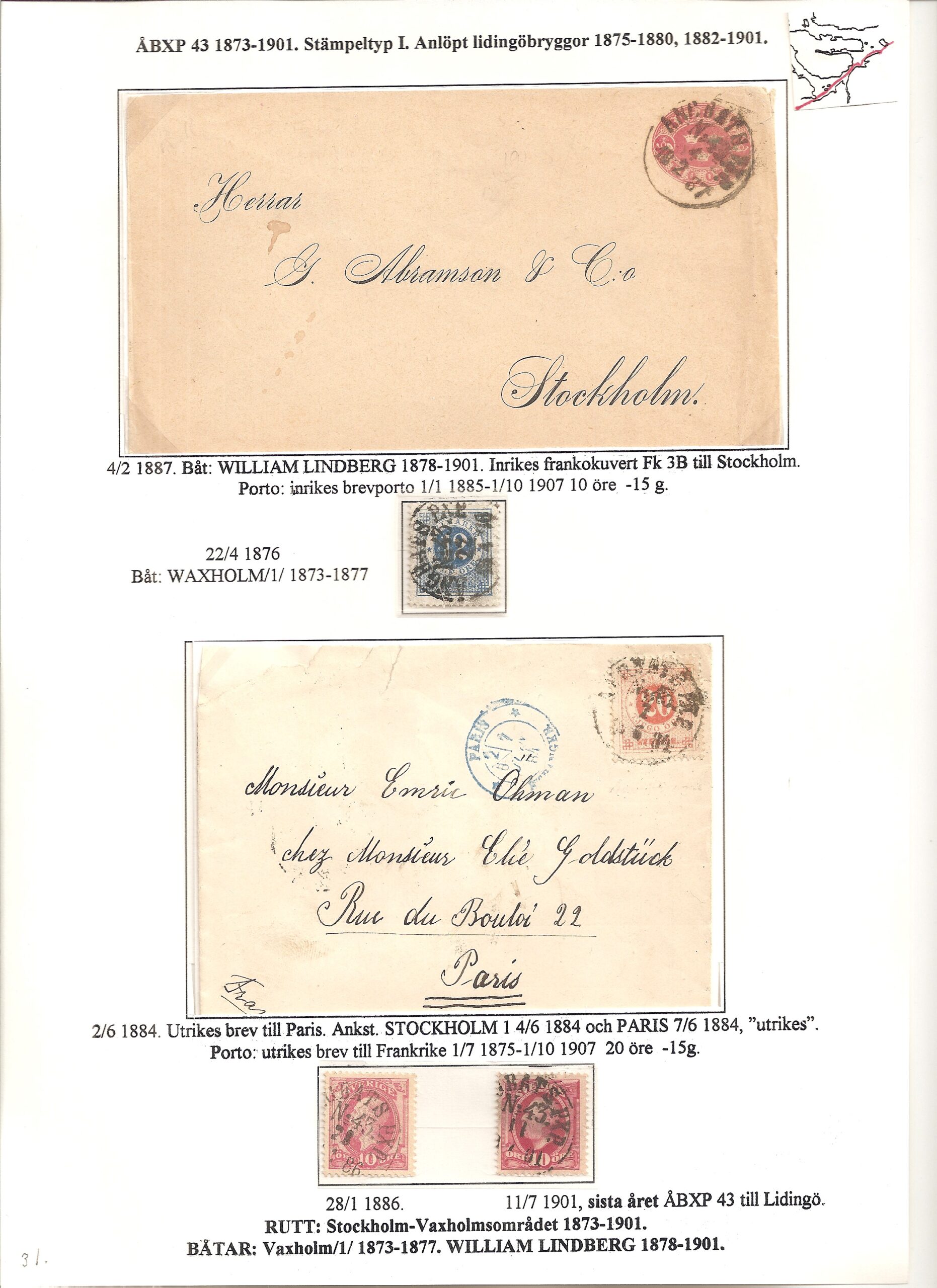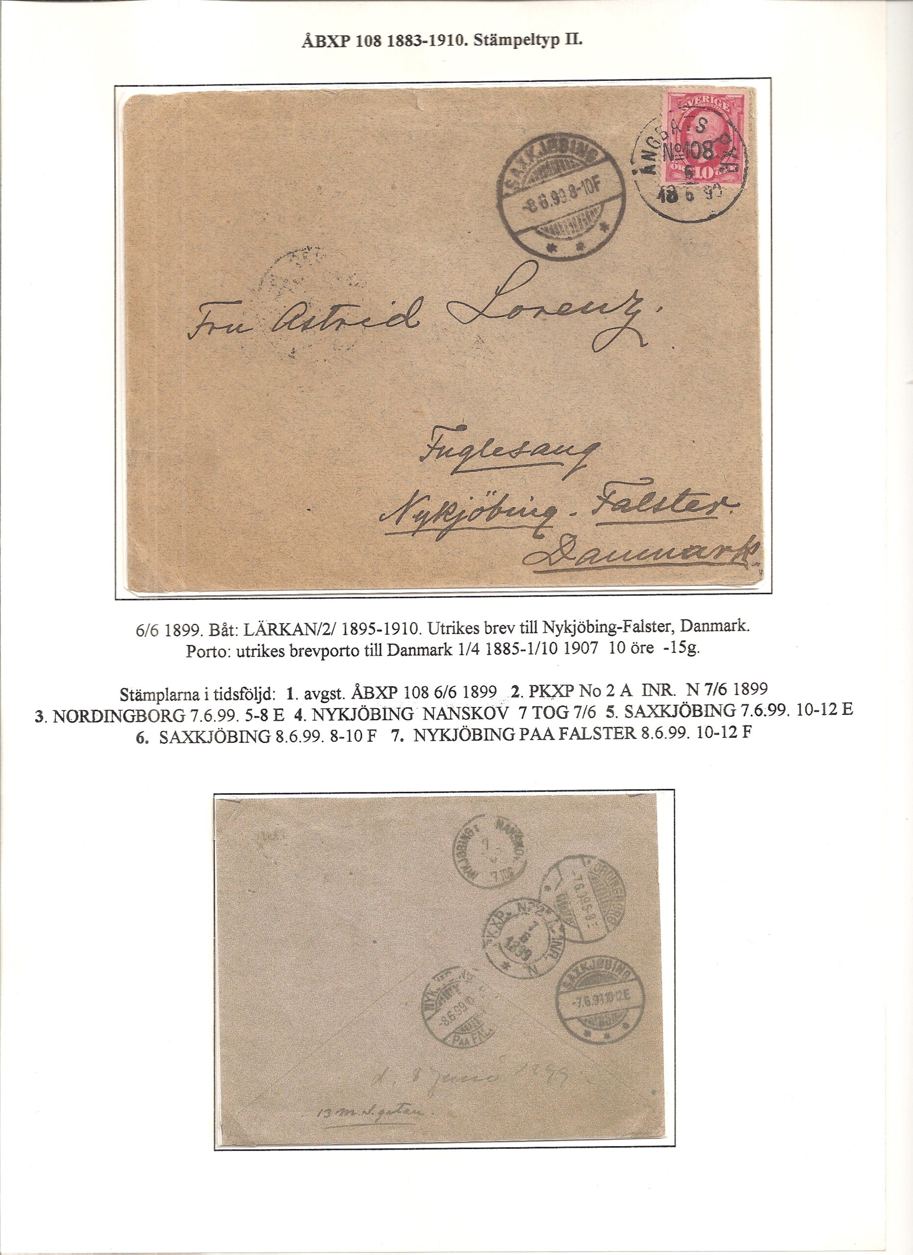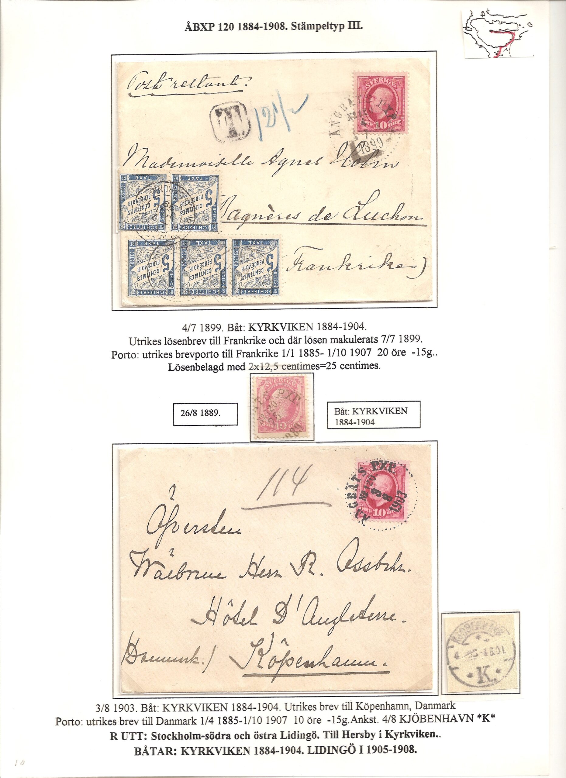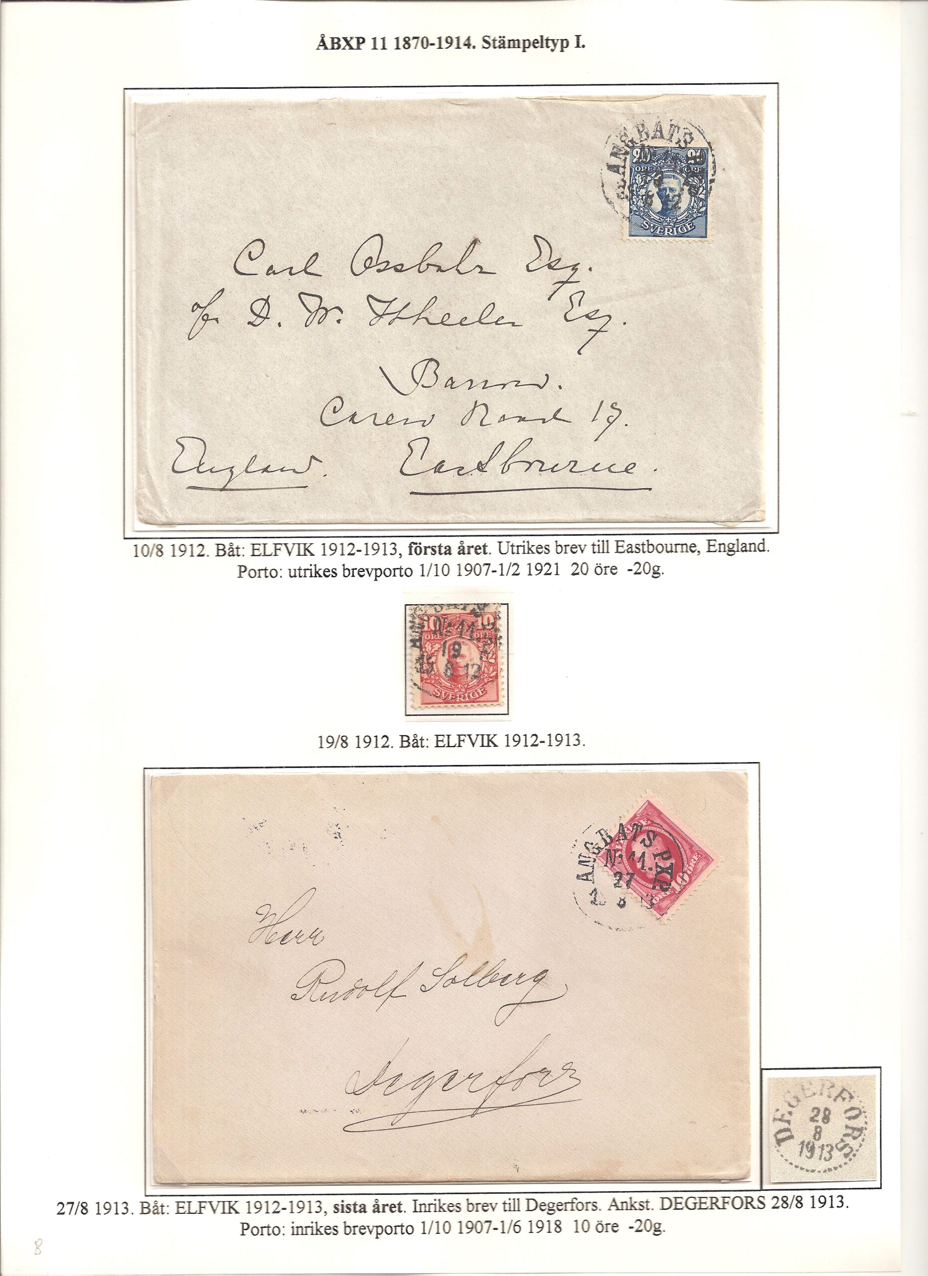 Samlingen Ångbåtspost till Lidingö skapades av Tofte Norén (1928 – 2017). En speciell stämpel är den blåa ÅBXP 11.